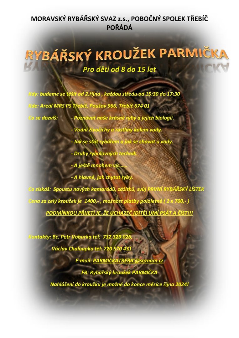 MRS, pobočný spolek Třebíč pořádá pro začínající malé rybáře od 20. září 2023 „RYBÁŘSKÝ KROUŽEK“.